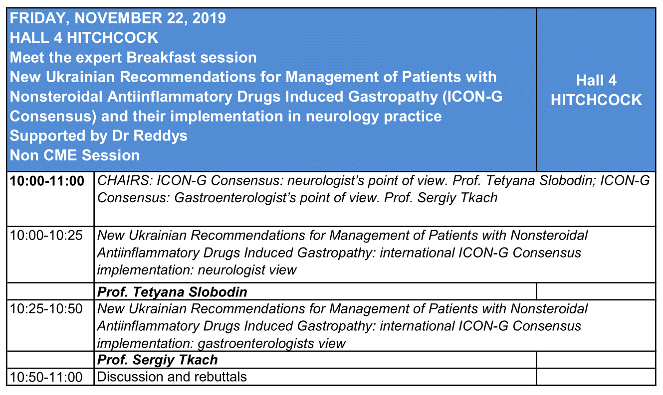 Meet the expert Breakfast session "New Ukrainian Recommendations for Management of Patients with Nonsteroidal Antiinflammatory Drugs Induced Gastropathy (ICON-G Consensus) and their implementation in neurology practice"